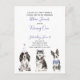 Seu bebê está virando um! Convide seus convidados especiais com este adorável cartão postal de convite com cães pintados à mão com aquarelas, em roxo, preto e branco. O nome do bebê, "Turning One" e a data estão na tipografia roxa com letras escritas, e personalizada em um sans negro moderno chic serif. Copyright Elegant Invites, todos os direitos reservados.