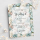 Flores verdes e brancas poeirentas como fundo. Personalize e adicione seus nomes e detalhes.