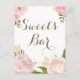 Sinal de bar de doces Whimsical com lindas ilustrações de aquarela de peonias e rosa. Isto é parte de uma suíte de casamento. Perfeito para festas de primavera e jardim. Itens correspondentes estão disponíveis.