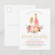 Cartão Postal De Convite Flores Rosa Modernas e Dourada Brilhante