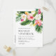 Cartão Postal De Convite Flores Tropicais de Aquarela e Casamento Verde