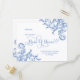 © Socialite Designs Inc. Lindos cantos em redemoinho e floreios no cartão "você será minha dama de honra", pintado em aquarela azul real suave, que complementa a coleção de casamento correspondente. Um cartão elegante para celebração em qualquer época do ano. Se você precisar de ajuda com a personalização ou quiser outros produtos criados com este design, por favor não hesite em contactar a Socialite Designs.