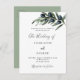 Um fundo branco decorado com azeitonas e folhas de azeitona. Personalize e adicione seus nomes e detalhes. Fundo: fundo verde-oliva.