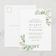Cartão Postal De Convite Folhas de Água Verde e Casamento Verde