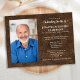 Funeral Rustic Memorial / Celebração Do Convite À Vida. Estes convites de simpatia por funeral apresentam uma foto em um design de couro de fax castanho vestido. Personalize esta celebração do convite para o funeral de vida com as fotos, nomes e datas de seus entes queridos, detalhes do evento. Esta celebração do convite à vida é perfeita para serviços de memórias e convites para funeral. COPYRIGHT © 2021 Judy Burrows, Black Dog Art - Todos Os Direitos Reservados. Memorial Foto Faux Leather Celebração Do Cartão-Postal De Convite À Vida