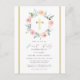 O elegante e feminino primeiro convite de comunião santa, com uma cruz cristã de ouro falsa, enquadrada por flores e folhagem cor-de-água cor-de-rosa-rubor. Seus detalhes personalizados de evento aparecem embaixo de uma bela tipografia de script. Há linhas falsas de ouro em ambos os lados do convite. Personalize esses convites alterando o texto nas caixas modelo.