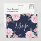 Cartão Postal De Convite Fundo Rosa de Peony e Marinho | RSVP