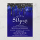 Cartão Postal De Convite Glitter Preto Azul Elegante Drives 50 Festas de an