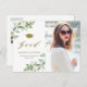 Convide convidados para a sua festa de formatura com este cartão-postal de convite de formatura personalizável. Apresenta flores brancas de aquarela e verde. Personalize este convite para a graduação de fotos adicionando uma foto e seus detalhes. Este cartão-postal de graduação verde é perfeito para qualquer tema de evento.
