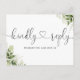 Um verde elegante deixa um script de coração preto e branco respondendo gentilmente à placa RSVP. O inverso apresenta os seus detalhes e uma solicitação divertida de música de convidado. Projetado por Thisnotme©