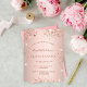 Um convite moderno, na moda e glamouroso para uma Quinceañera, festa de aniversário 15. Um fundo metálico rosa dourado falso com brilho falso. O nome é escrito com um moderno e escuro, rosa dourado, escrito com letra de estilo manuscrito. Personalize e adicione os detalhes da sua festa. Traseira: rosa dourado e cintilação falsa, design postal. Dica: Se você não quiser que pareça um cartão postal, clique em personalizar, vá para o verso e remova o divisor e o carimbo de posto.