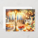 Ilustração de aquarela de Hanukkah. Uma mesa bem arrumada para uma comemoração festiva, com uma menorah tradicional com velas iluminadas. Luz suave e quente, enquanto decorações de férias adicionam um toque de alegria. Luzes quentes criando uma atmosfera acolhedora e convidativa.