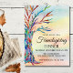Convide seus amigos para seu Janto de Amizade com este cartão postal de convite exclusivo. Apresenta uma árvore de mosaico nas cores do arco-íris num fundo de aquarela. Facilmente personalizável. Há versões de Ação de Graças deste convite na minha loja. Mosaico original e Watercolor © Michele Davies.