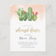 Cartão Postal De Convite Janto de ensaio de Aquarela Rosa e Cactus