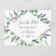 Esta lavanda rústica que salva o cartão postal é perfeito para um casamento simples e elegante ao ar livre. O design floral apresenta folhas de cor aquosa de eucalipto e verde com espinhos de flores silvestres roxas.