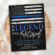 A Lenda Se Aposentou. Celebre anos de serviço dedicado, ou comemore seu novo formando da academia de polícia, e convide amigos e família para a sua polícia com este convite para a aposentadoria da polícia de linha azul fina Convite para a design de bandeira americana em cores de bandeira policial, design angustiada. Veja a nossa coleção de presentes, favoritos para festas e suprimentos de aposentadoria de agentes da polícia. COPYRIGHT © 2021 Judy Burrows, Black Dog Art - Todos Os Direitos Reservados. Cartão-postal de convite para aposentadoria da polícia aposentado Thin Blue Line