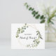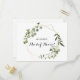 Este verde tropical deixa um cartão postal de madrinha de casamento perfeito para um chá de panela de destino. A design apresenta lindas folhas verdes pintadas à mão, enfeitando um quadro geométrico dourado.