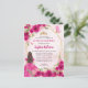 Cartão Postal De Convite Magenta Glam Dourada Floral Princesa Quinceañera