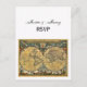 Cartão Postal De Convite Mapa Mundial Antiquado, RSVP BG Branco