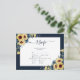 Cartão Postal De Convite Marinho Azul Girassol Script Botânico Casamento RS