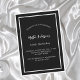 Um convite magnético moderno e elegante. Um fundo preto decorado com quadros brancos. Personalize e adicione um nome e detalhes. Texto branco.
