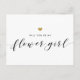 O cartão postal de convite Modern Gold Hearts Will You Be My Flower Girl apresenta um layout minimalista com um motivo de coração dourado falso elegante (por favor, note: este é um efeito impresso de alta qualidade, não uma folha de ouro real) e tipografia de roteiro moderna. Perfeito para casamentos rústicos e modernos.