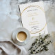 Convite moderno para casamento com um efeito de ouro de luxo anéis e um roteiro elegante onde você pode mudar a noiva do casamento e os nomes do noivo, data, local, endereço, cores de fontes e tamanhos. Os círculos dourados acrescentam um olhar elegante com o fundo branco. Note que o efeito do ouro é impresso e que não é utilizada nenhuma folha neste produto.