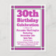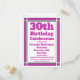 Enviar convites para uma celebração de aniversário de 30 anos com este Cartão-postal de Convite para aniversário de 30 anos Roxo Geométrico. Personalizado com suas informações pessoais e de terceiros.