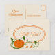 Adoro quando é hora de trabalhar com cores de queda! Este convite postal tem uma grande abóbora laranja e vinhas verdes com folhas decorando um círculo e seu texto de evento está no centro. As costas têm mais designs de abóbora e espaço para as suas informações sobre eventos. Por favor, tenha uma queda abençoada!