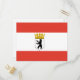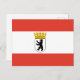 Cartão-postal com bandeira variante de Berlim, bandeira estatal com faixas horizontais de vermelho e branco, com ilustração de um escudo dentro de urso preto com uma coroa