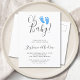 Cartaz de Convite para Chás de fraldas de Bebês. Envie estes convites simples e na moda para o chá de bebê para a família e amigos. Eles são decorados com tipografia moderna e pés de bebê pintados a aquarela bonitinhos pintados à mão em azul pastel. Porque nós criamos nosso próprio trabalho de arte você não encontrará essa imagem exata de outros designers. Personalize esses convites com seu nome e detalhes. Original Watercolor © Michele Davies.