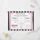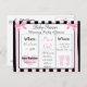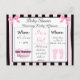 Cartão-postal de Convite de festas rosa e Chá de fraldas preto para uma menina. Você pode personalizar as informações na área personalizar.