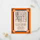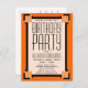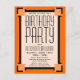 Um convite de aniversário ousado para enviar aos amigos e à família. Este Cartão-postal de Convite à Festa de aniversário de Deco de Arte Laranja pode ser personalizado com o nome e os detalhes da festa. Um padrão de deco de arte geométrica em três tons de linhas laranja e pretas.