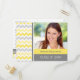 Cartões postais de convite de ano e festa de formatura de fotos em amarelo-limão brilhante elegante e moderno, cinza e retrorreflector branco e zigzags de chevron casual listram o padrão de colheita. Personalize este convite de formando com os detalhes do seu partido, com a sua própria fotografia e ano de graduação para um convite verdadeiramente exclusivo para o seu formando.