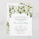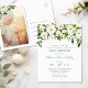 Barato com cartões postais personalizados para bebê Baptism personalizados com seus detalhes de evento. Esta bonito design botânica apresenta uma moldura de aquarela de folhas verdes e rosas de marfim. Use as ferramentas de design para personalizar o texto, editar as fontes e as cores ou adicionar suas próprias fotos para criar um convite rústico de Santo Batismo floral ou de Natal.