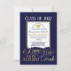 Ouro elegante e design azul para uma festa de formatura, por favor personalize cada parte do texto. Salve o design de data incluído com a inscrição manual. Elemento de chapéu de graduação incluído.