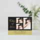 Cerimônia de graduação ou anúncio de Convite de festas O cartão postal apresenta design preto e dourado com classe cursiva de (qualquer ano). Adicione 3 fotos personalizadas e seu texto. Use este cartão postal como convite para a graduação ou para festa de formatura ou para o anúncio de graduação.