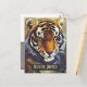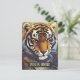 Amigos e família com um cartão postal de convite para tigre moderno e criativo. A frente do cartão postal apresenta um design de tigre com a frase, "Você é Convidado." Detalhes sobre o evento estão no verso juntamente com um código QR. O código QR pode ser usado para seu RSVP, site (entre outros). Cores terríveis. Design de tigre personalizado. Use a modelo para personalizar.