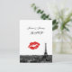 Paris França Skyline nº 1 BW Black White Invitation Suite - RSVP Postcard ============= Convites e acessórios personalizáveis com uma visão em preto e branco da icônica Paris, linha do horizonte França com a Torre Eiffel e um beijo de batom vermelho. Este produto faz parte de um conjunto de designs de correspondência e coordenação que são facilmente personalizáveis para muitas ocasiões e eventos. Se você precisar de placas RSVP separadas, Notas de agradecimento, Carimbos, ímanes ou outros acessórios, por favor verifique nossas outras listas. Observe que este é um design gráfico e não contém tecidos, metais, gravura ou relevo. 2013 ©NYCisMyMuse