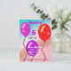 Cartão-postal do Convite de festas Aniversário de criança dos Balões Vermelhos Roxos. Este convite tem três balões vermelhos, cor-de-rosa e roxos com estrelas num céu colorido. Excelente como um convite para uma garota ou uma festa de aniversário de menino.