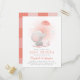 Um pouco de amendoim está a caminho! Celebre sua menina no caminho com esses bonitinhos convites para bebês temidos de animais. Apresentando um elefante sentado no chão segurando um guarda-chuva cor-de-pêssego com seu porta-malas e com um pequeno coelho ao lado dele. Inverter para um padrão de bolinhas contra diferentes tons de rosa.