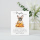 Estes adoráveis convites para bebês de cachorrinho de cachorrinho francês são a forma perfeita de celebrar a chegada de uma abóbora nesta temporada de outono. Com o seu design bonitinho e simples, estes convites apresentam uma ilustração encantadora de um cachorrinho francês rodeado de folhas coloridas de outono em tons de laranja, vermelho e amarelo. A brincalhona mensagem "A Little Pumpkin is on the Way" adiciona um toque de capricho a esses convites modernos e na moda. Quer você esteja hospedando uma reunião íntima ou uma celebração maior, esses convites certamente vão dar o tom para uma ocasião festiva e memorável. Por que não convidar seus entes queridos para se juntarem à diversão e dar as boas vindas a sua abóbora para o mundo com esses convites deliciosos, perfeitos para celebrar a chegada de um bebê ou garota? COPYRIGHT © 2023 Judy Burrows, Black Dog Art - Todos Os Direitos Reservados. Cartão-postal de convite para Chás de fraldas de queda simples, para abóbora de abóbora