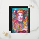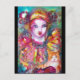 Pintura colorida, vibrante e caprichosa em aquarela por Bulgan Lumini (c) em cores brilhantes vermelho, amarelo, azul, branco e roxo inspirada no Carnaval de Veneza e na Commedia dell'Arte.