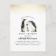 Uma ilustração adorável de aquarela com dois pais e um pinguim bebê. Seu nome personalizado aparece em uma fonte de script de estilo de na moda com os detalhes de sua parte abaixo. No topo dos convites há um confete de ouro falso. Essas placas se revertem para uma cor de cinza neutra em termos de gênero.