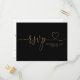 Um guião de coração dourado elegante numa placa RSVP preta. O inverso apresenta os seus detalhes e uma solicitação divertida de música de convidado. Projetado por Thisnotme©