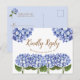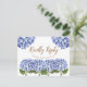 Cartão Postal De Convite Placas RSVP Florais Hydrangea Blue Elegante