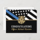 Honre a dedicação e o trabalho de duro de um novo oficial de polícia com este convite de formatura policial personalizável. Apresentando um crachá policial e a bandeira da polícia com riscas brancas e pretas e uma orgulhosa linha azul fina, esta design simboliza força, serviço e sacrifício. O convite é personalizado com o nome do formando em letras douradas, fazer-o como uma lembrança memorável para amigos, familiares e colegas oficiais. Perfeito para celebrar a graduação, promoção ou marco de uma academia de polícia na carreira de um futuro oficial. Convide seus convidados em estilo e mostre suporte para o membro mais novo da comunidade de linha azul fina.