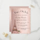 Um convite moderno, na moda e glamouroso para uma Quinceañera, festa de aniversário 15, tema parisiense. Um fundo metálico rosa dourado falso com brilhos falsos e a torre Eiffel com algumas flores. O nome é escrito com um moderno estilo escrito à mão. Personalize e adicione os detalhes da sua festa.