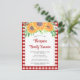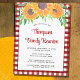 Planejar uma reunião de família? Convide a sua família para a reunião com este cartão postal de convite para a reunião da família floral, que é decorado com girassóis de aquarela e verde num fundo de gingham vermelho. Facilmente personalizável. Há um lugar na parte traseira do cartão postal para você adicionar sua mensagem. Original Watercolor © Michele Davies.