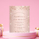 Um convite moderno, na moda e glamouroso para a 50ª festa de aniversário (ou qualquer idade) da mulher. Um fundo rosa dourado com faíscas. O nome é escrito com um moderno e escuro, rosa dourado, escrito com letra de estilo manuscrito. Personalize e adicione os detalhes da sua festa. Fundo: rosa dourado, design postal. Dica: Se você não quiser que pareça um cartão postal, clique em personalizar, vá para o verso e remova o divisor e o carimbo de posto.
